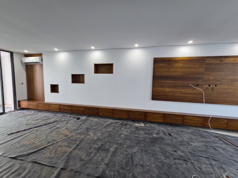 Habillages muraux — bois cannelé & niches